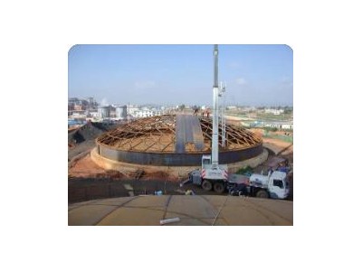 1)气柜柜顶浮升前,将立柱及侧板、活塞系统安装完哔;